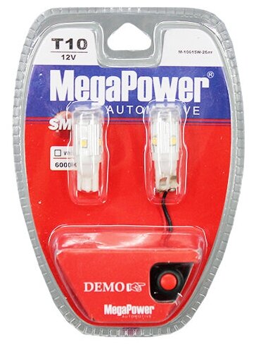 Отзывы на MEGAPOWER-AUTOMOTIVE 10615W2БЛТ Лампа светодиодная 12V W5W T10 W2.1x9.5d 6000K 5 LED с тестером блистер (2шт.) MEGAPOWER