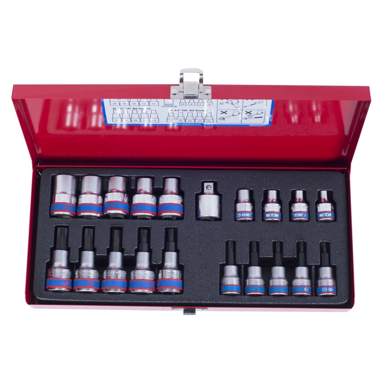 7120PR KING TONY Набор торцевых насадок и головок 1/2"&3/8", TORX, Е6-Е20, Т10-Т55, 20 предметов