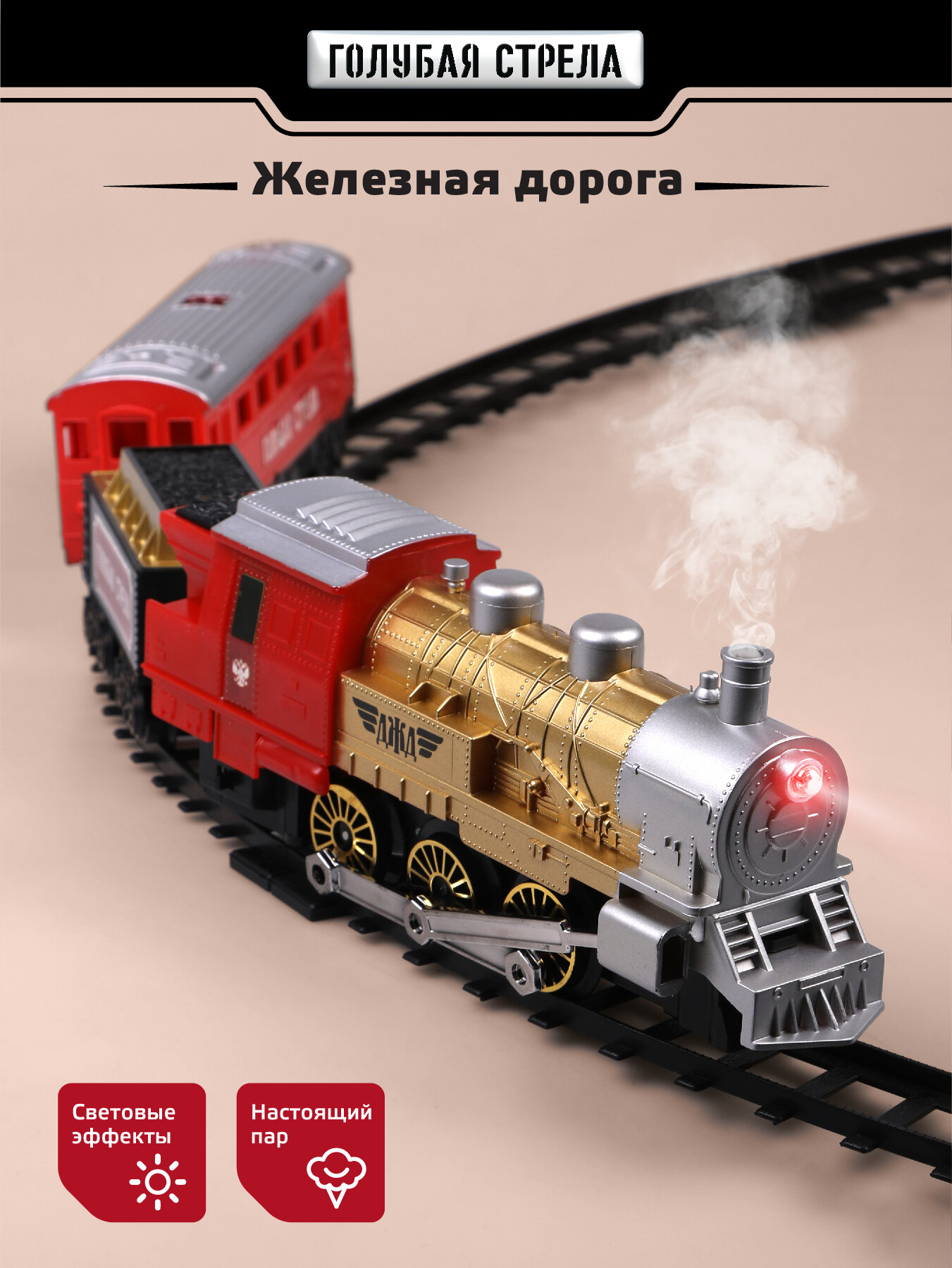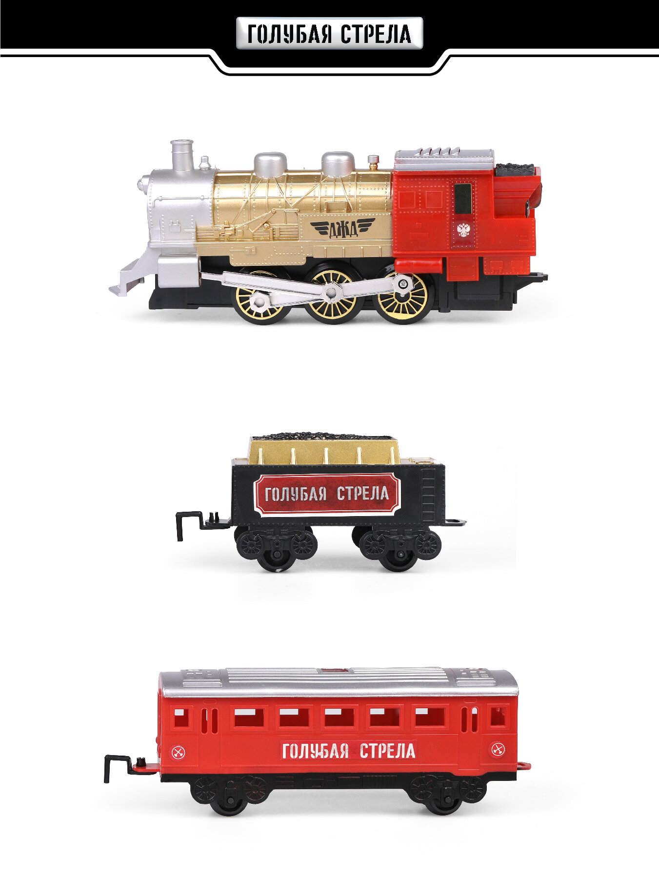 10 цен на Ж/д Голубая стрела, 282см, локомотив, тендер, вагон, свет, дым.