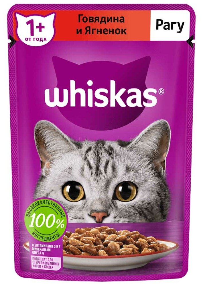 Влажный корм Whiskas для кошек говядина и ягненок рагу 75г информация: