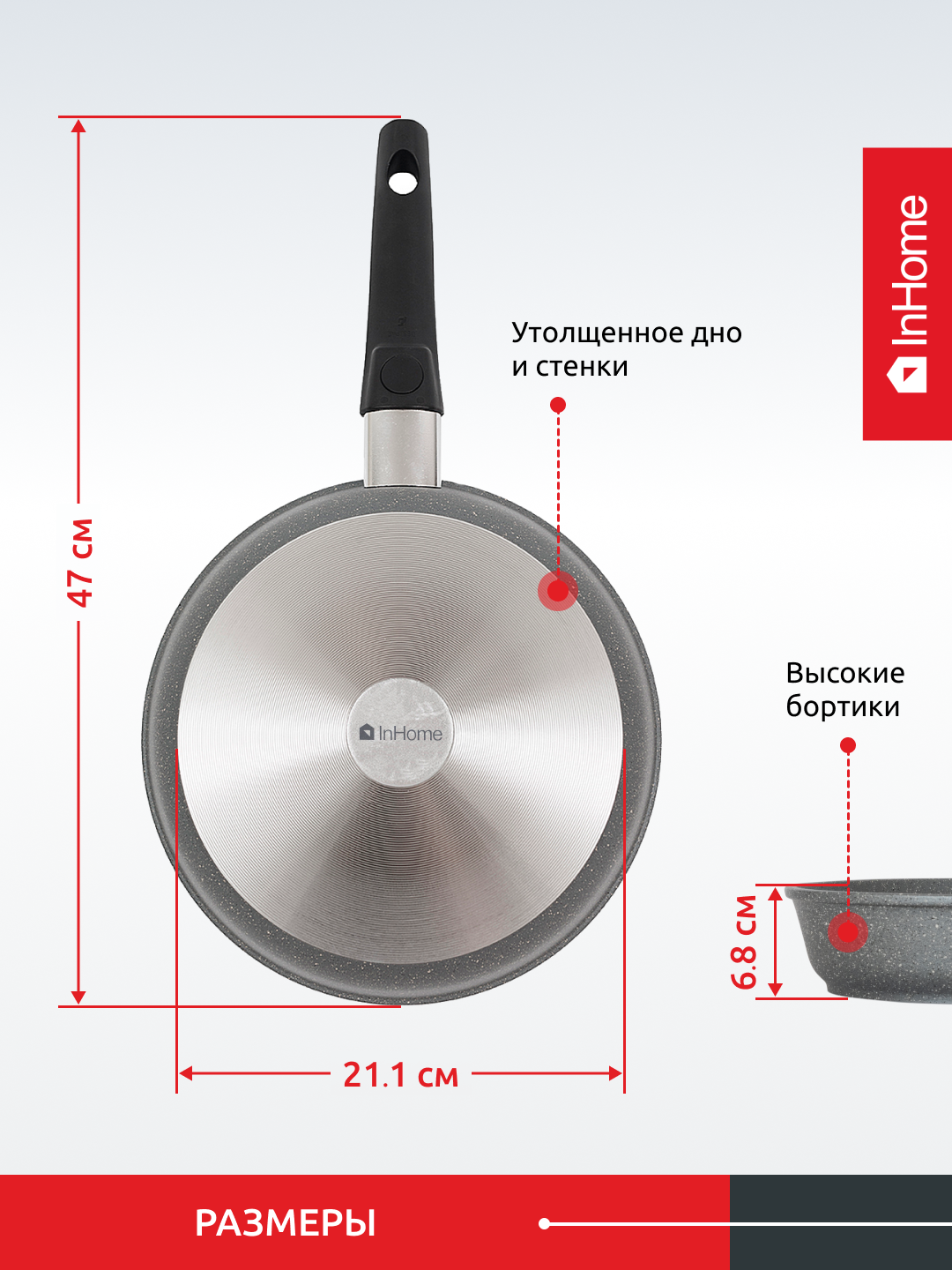 Сковорода InHome классическая литая толстостенная с антипригарным покрытием, съемная ручка