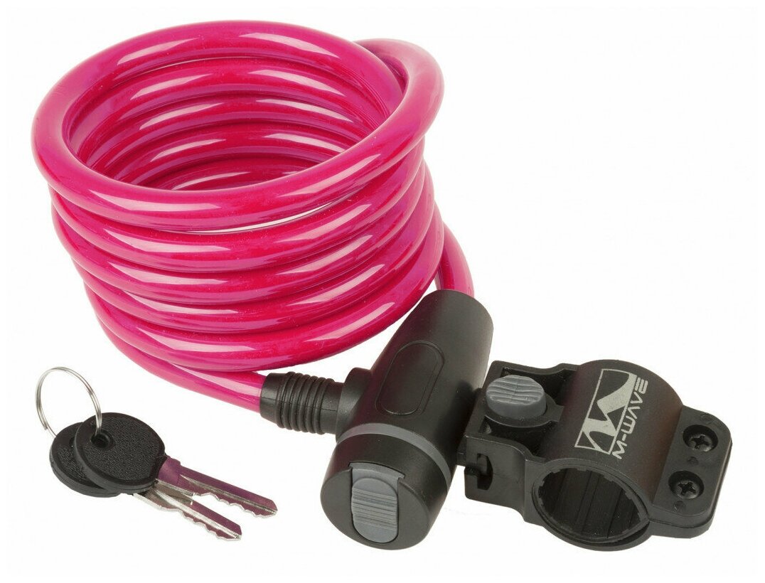 Замок велосипедный противоугонный длиной 1800 мм, защитный колпачек, 2 ключа, розовый M-WAVE информация: