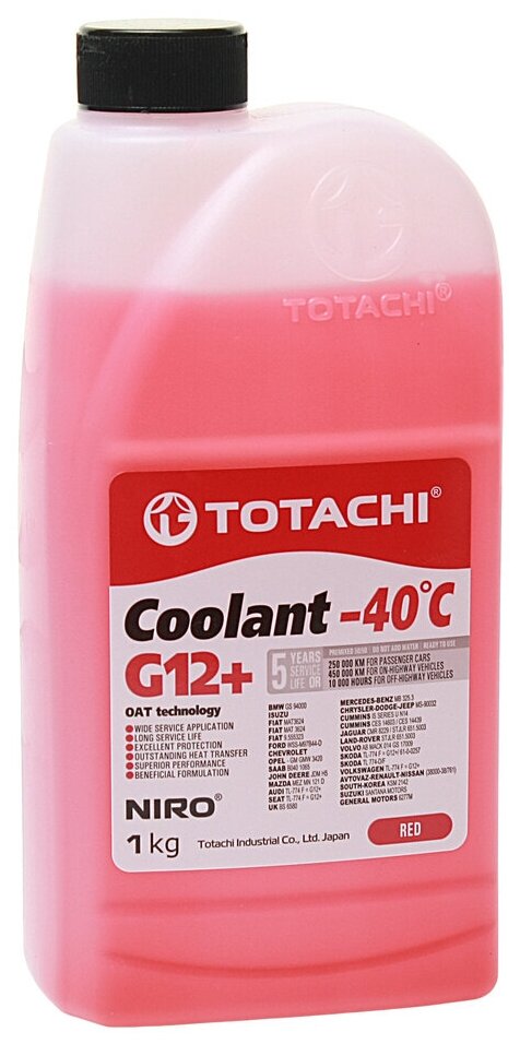 Отзывы на Антифриз (Niro Coolant/ G12+/ 1 Кг./ -40 C/ Красный) TOTACHI арт. 43101
