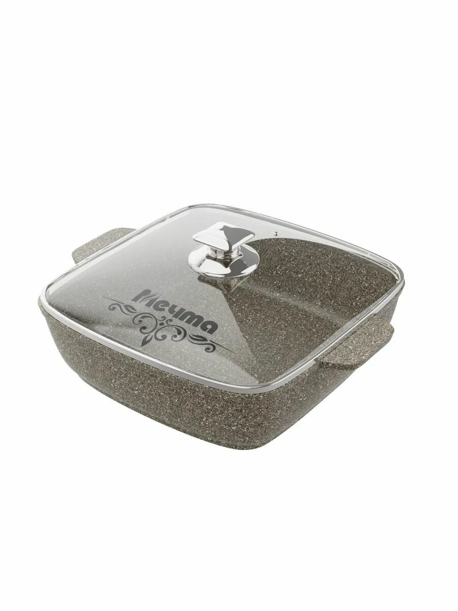 Мечта Сковорода «Гранит Brown», d=28 см, съёмная ручка, стеклянная крышка, антипригарное покрытие, цвет коричневый
