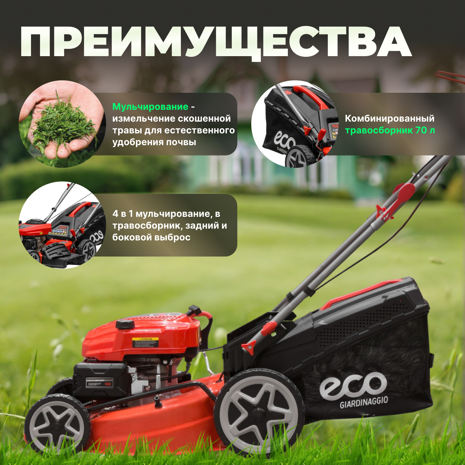 ECO Газонокосилка бензиновая самоходная LG-735 . информация: