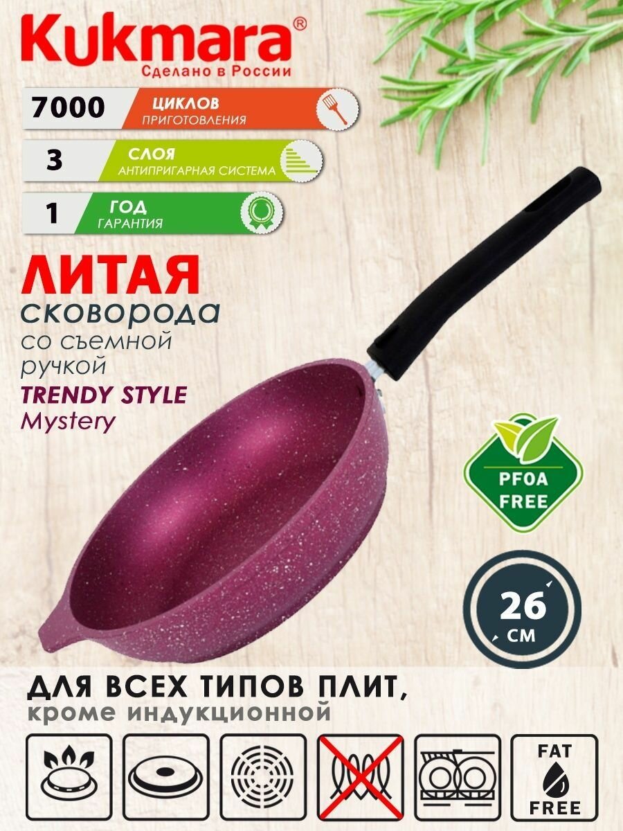 Сковорода со съемной ручкой и крышкой 26 см Vigoroso Nero (индукция, глубокая сковорода)