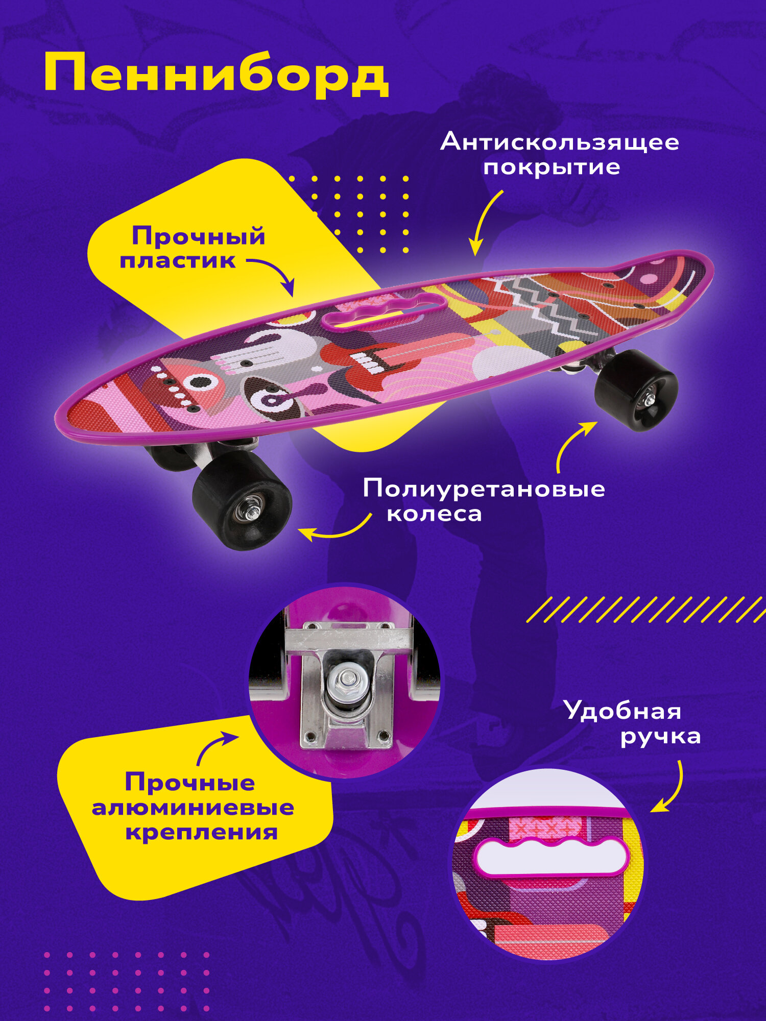 Скейтборд пластик 60 см принт колеса PU крепления алюминий Shantoy Gepay 636143