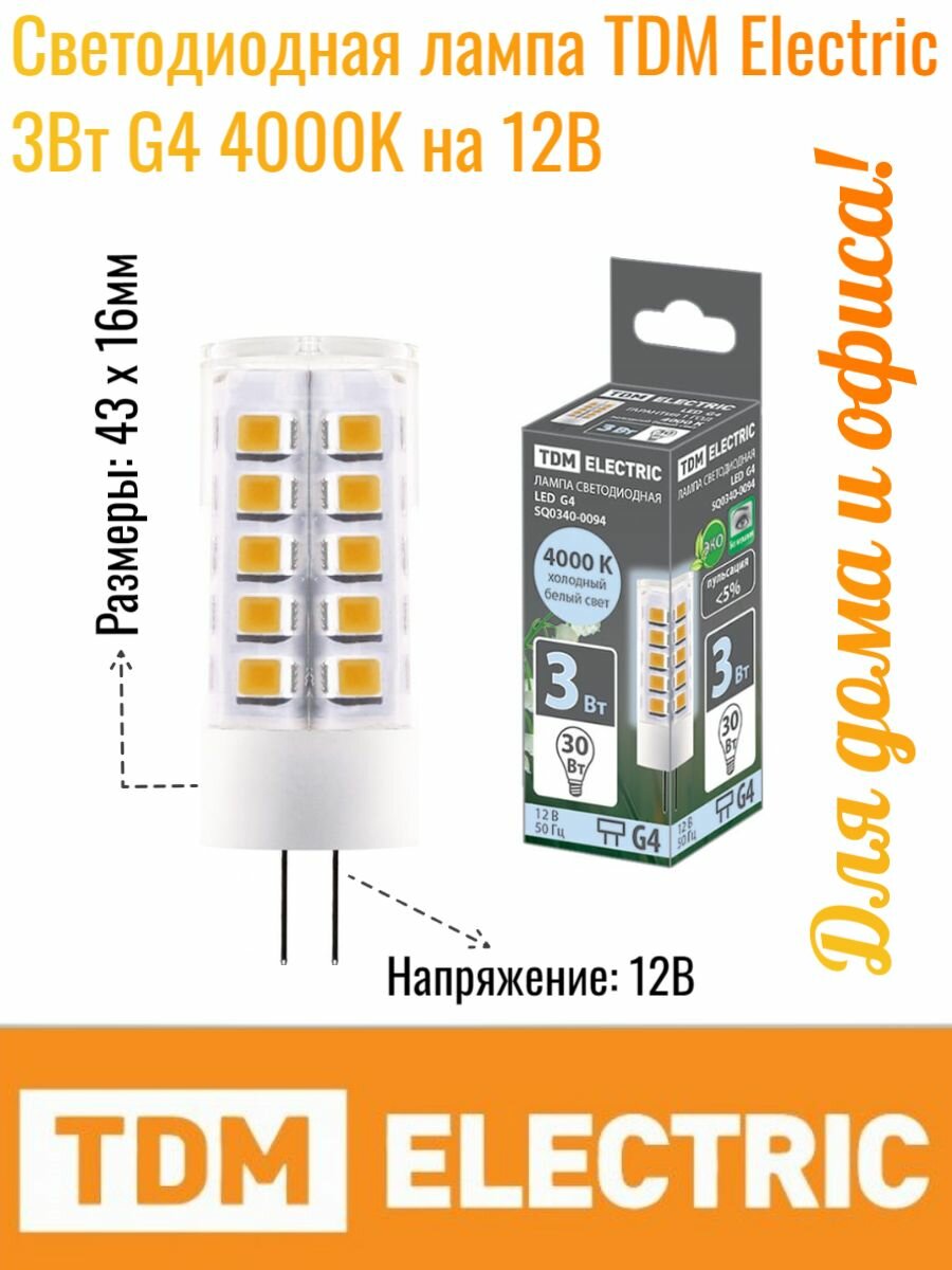 Отзывы на Светодиодная лампа TDM Electric 3Вт G4 4000K на 12В, SQ0340-0094