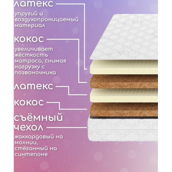 Матрас Капризун "Джангл Лакки", беспружинный, кокос/латекс, съемный чехол, 200х100х12 см 17 590 ₽