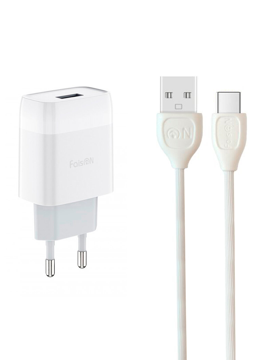 Сетевая зарядка 1xUSB FaisON C-72A, Vital, 2.1A, кабель Type-C, цвет: белый информация: