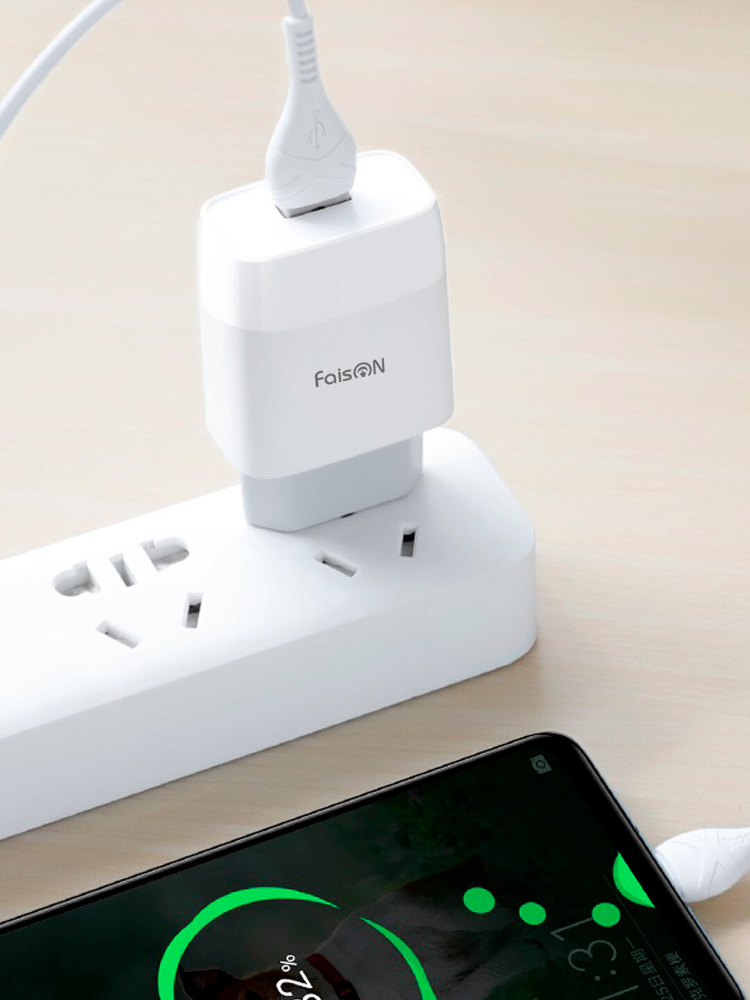 Отзывы на Сетевая зарядка 1xUSB FaisON C-72A, Vital, 2.1A, кабель Type-C, цвет: белый
