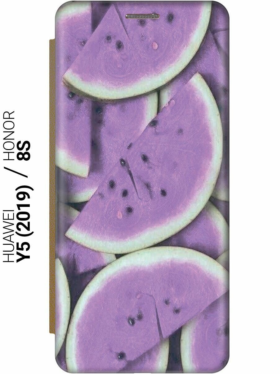 Чехол-книжка на Honor 8S / Huawei Y5 (2019) / Хуавей У5 2019 / Хонор 8с c принтом "Сиреневый арбуз" золотистый 524 ₽