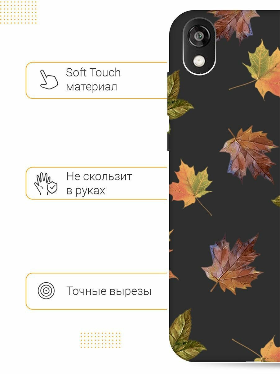 Матовый Soft Touch силиконовый чехол на Honor 8S, Huawei Y5 (2019), Хуавей У5 2019, Хонор 8с с 3D принтом "Maple" черный информация: