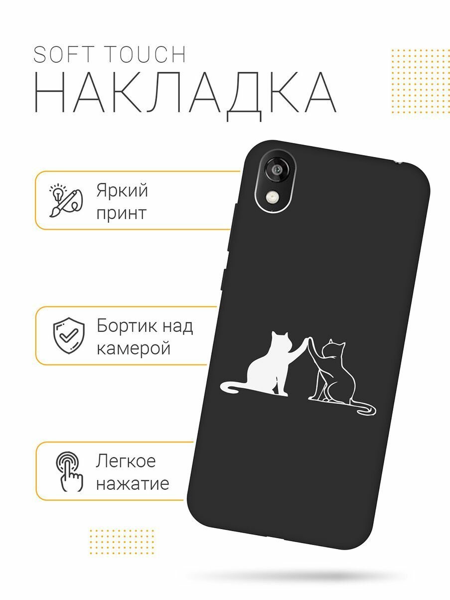 Матовый Soft Touch силиконовый чехол на Honor 8S, Huawei Y5 (2019), Хуавей У5 2019, Хонор 8с с 3D принтом "Cats W" черный информация: