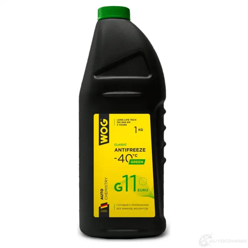 10 цен на WOG WGC0103 Антифриз 1кг - готовый зелёный, G11, BMW N600 69.0, Iveco Trucks 55523/1, Man 324 NF, MB 326.0, Saab 690 1599, VAG TL-774C, Volvo 1286083/002 и Lada до 2009г.