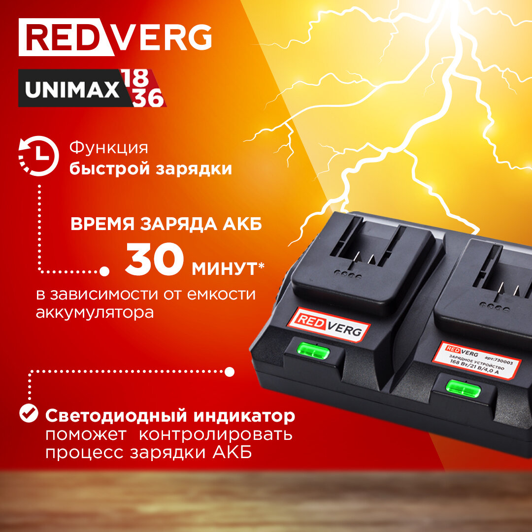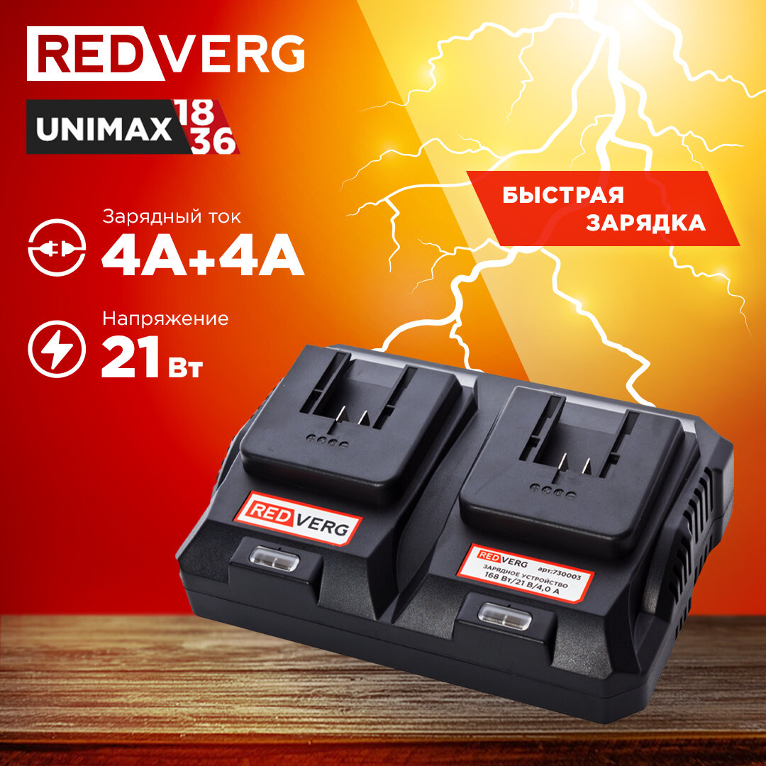 Зарядное устройство REDVERG для 2-х аккумуляторов 18V 4,0А (730003) информация: