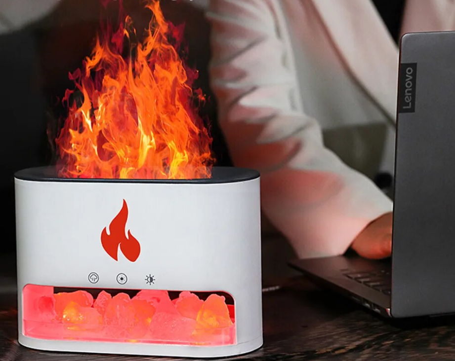 Увлажнитель воздуха и аромадиффузор с подсветкой для дома, ночник с эффектом пламяни