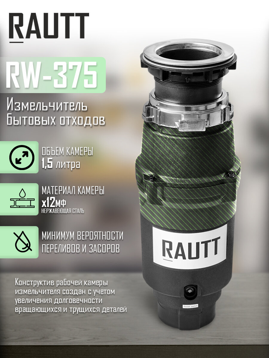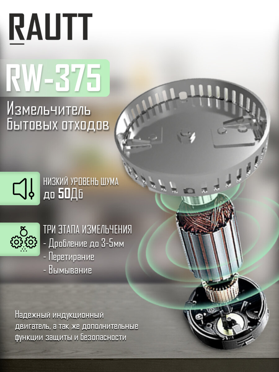 Измельчитель бытовых отходов RAUTT, RW-375, электрический, встраиваемый, 375 Вт, 1500 мл, измельчитель пищевых отходов кухонный 12 900 ₽