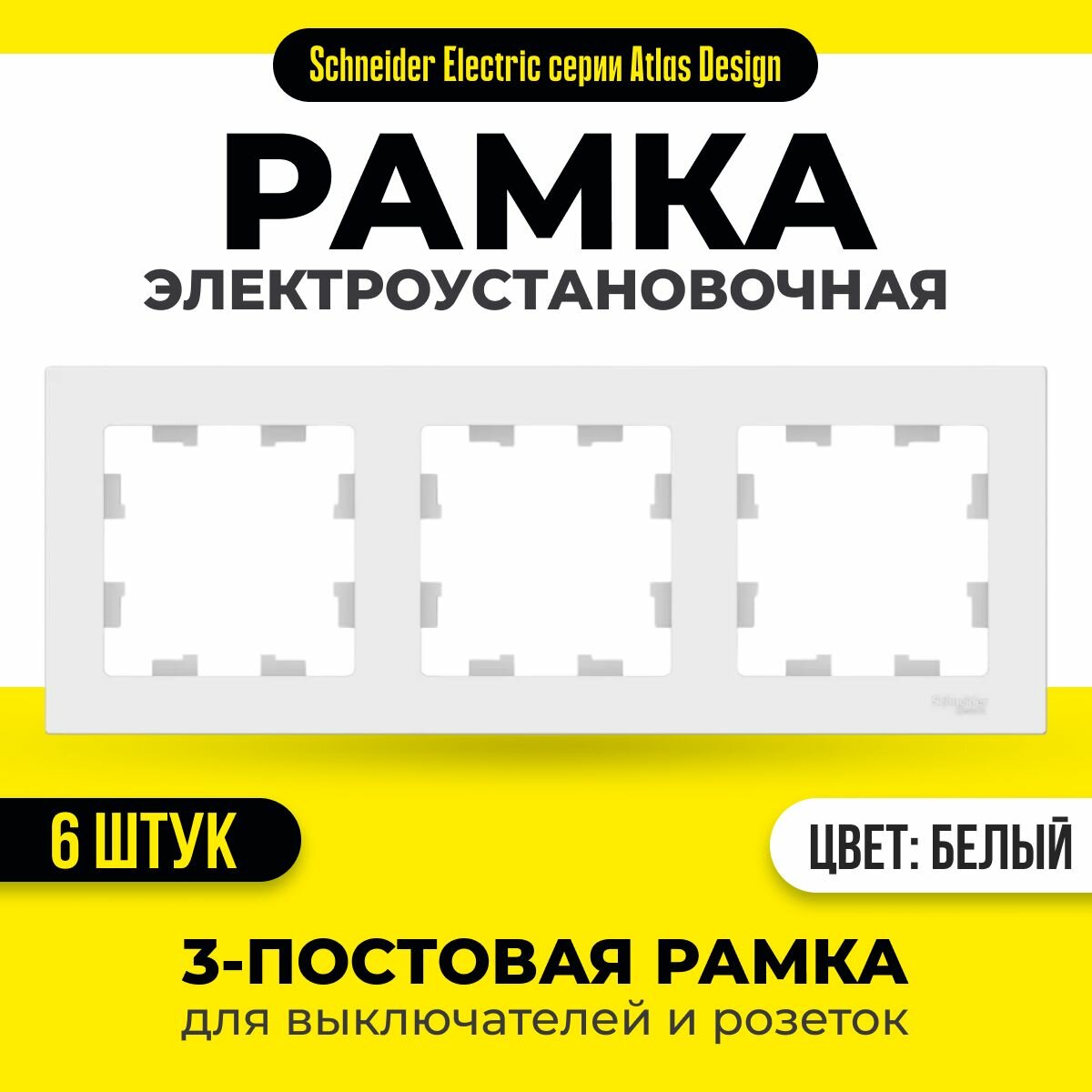 Рамка 3-постовая для розеток и выключателей 6 шт Schneider Electric / Systeme Electric AtlasDesign белый шнайдер ATN000103 информация: