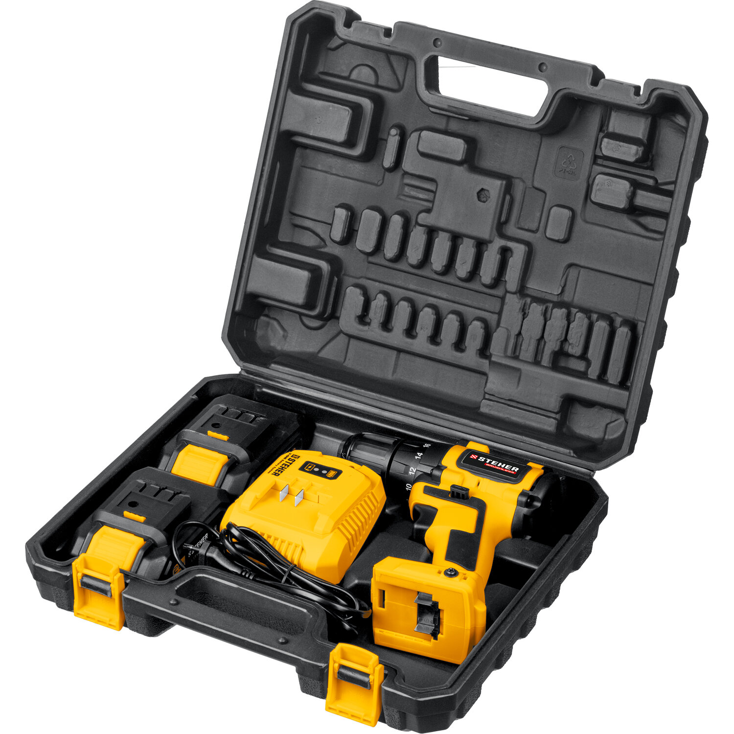 Бесщёточная дрель-шуруповерт STEHER 20В, 2 АКБ (2Ач), в кейсе