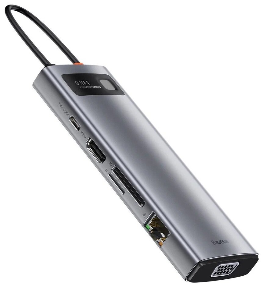 Отзывы на Переходник/Адаптер BASEUS Starjoy Series 9-in-1, Разветвитель, Type-C - USB3.0+PD+4K HDMI+SD/TF+RJ45+VGA, серый