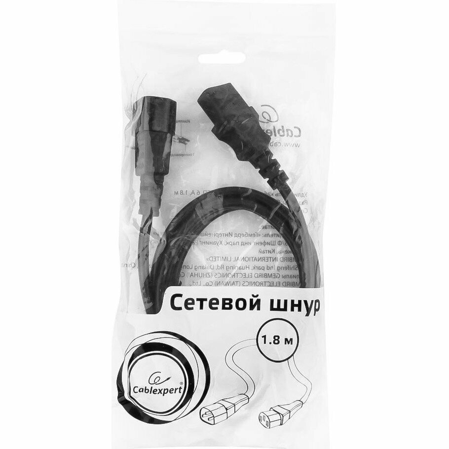 Cablexpert Кабель питания сист.блок-монитор PC-189 1.8м C13-C14 6А черный с заземлением информация: