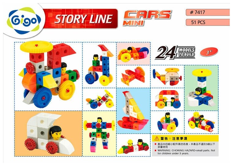 Мини-конструктор GIGO «Машины», 51 деталь, 24 модели, Гиго информация: