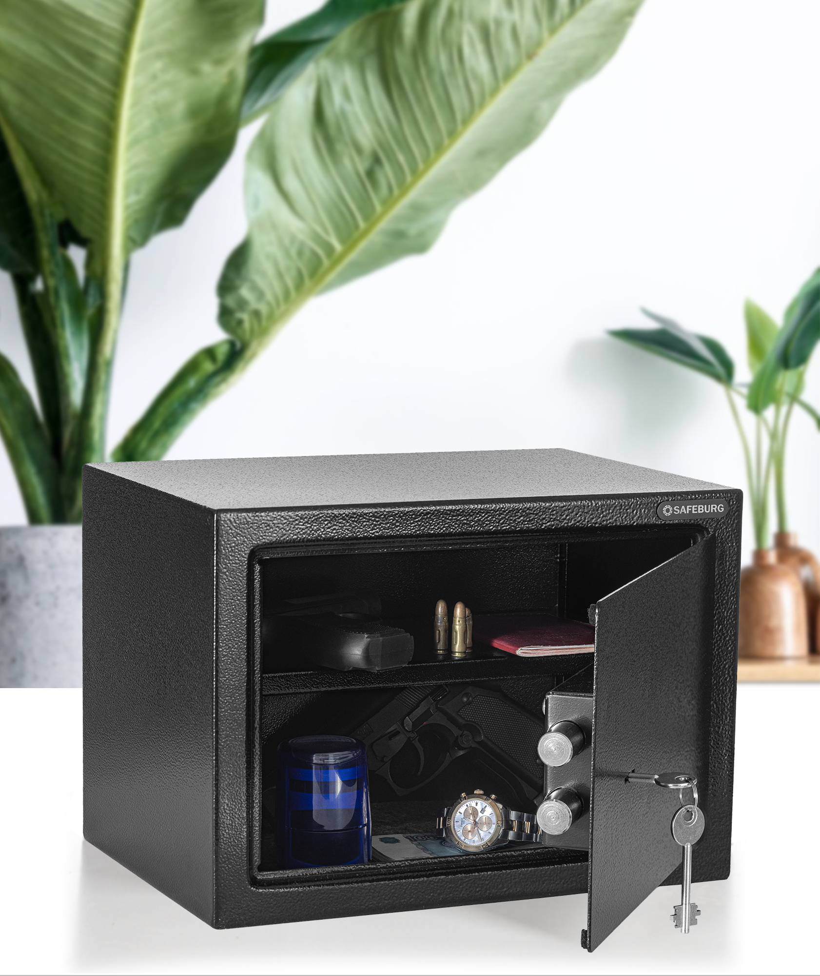 Сейф для денег и документов SAFEBURG SB-250KB BLACK с ключевым замком. Для драгоценностей, дома и офиса информация: