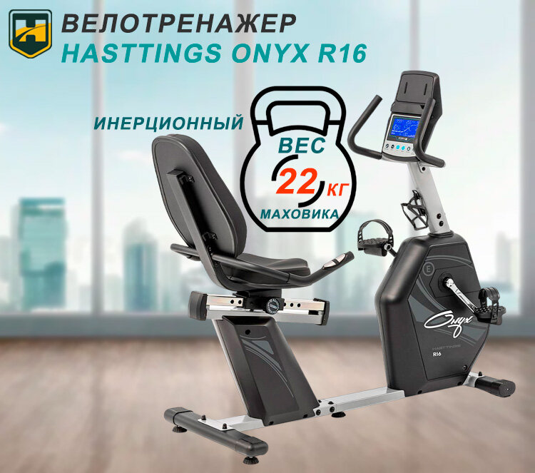 Велотренажер горизонтальный Hasttings ONYX R16-до 130 кг/жироанализатор/ до 500 ккал за 1 ч/ синхронизация с кардиопоясом/ проф. система сопротивления информация: