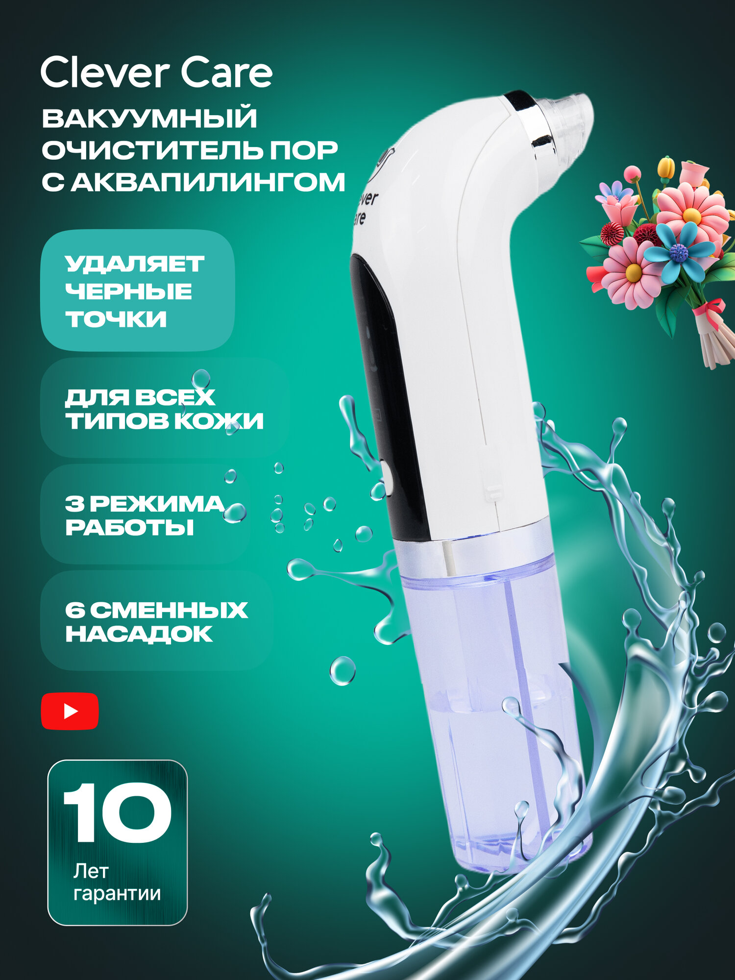 Вакуумный очиститель пор с аквапилингом CleverCare