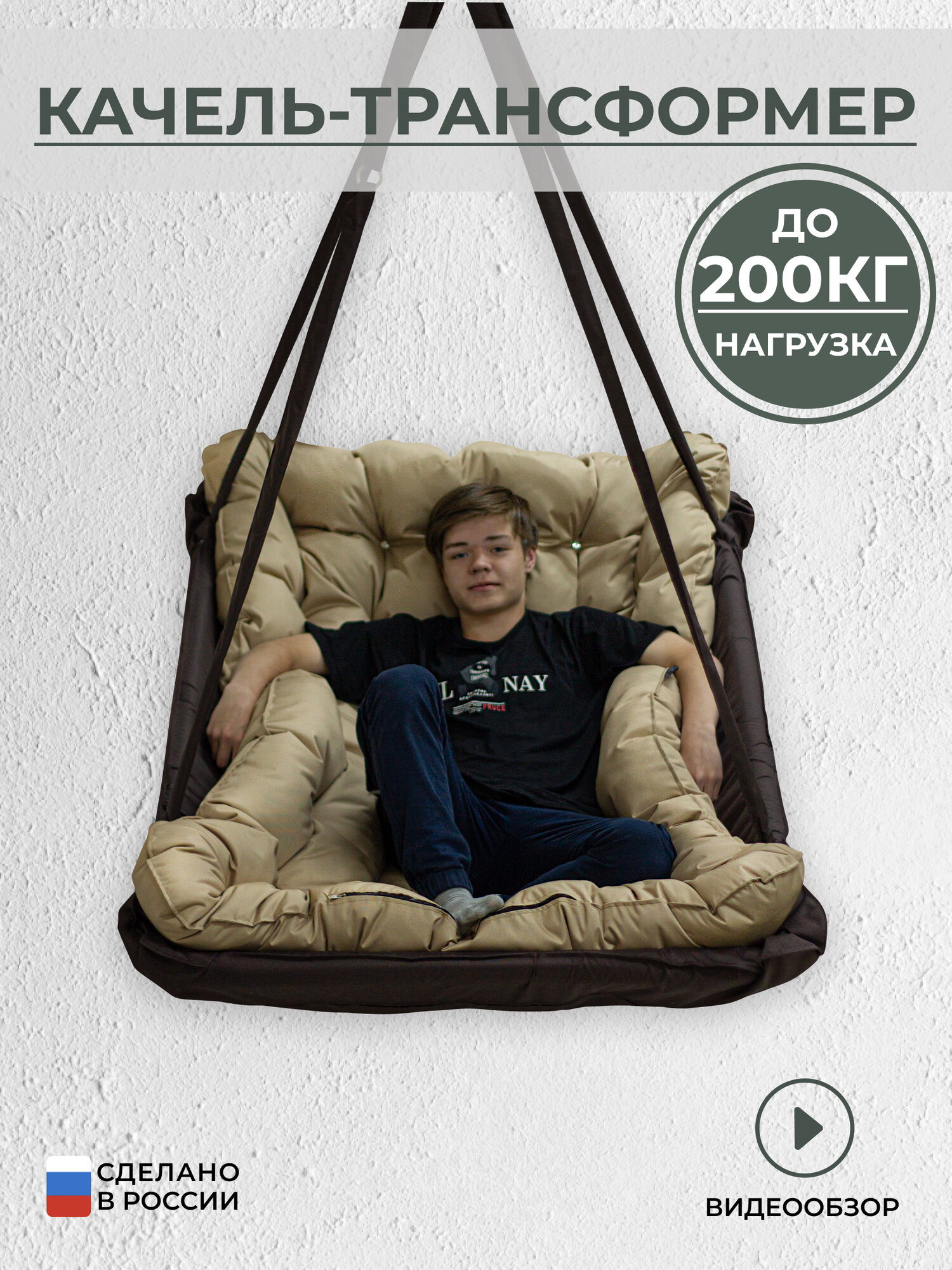 10 цен на Подвесные качели, качели садовые, диван 150*100, качели для дачи, уличные качели, качель коричневая с бежевой подушкой