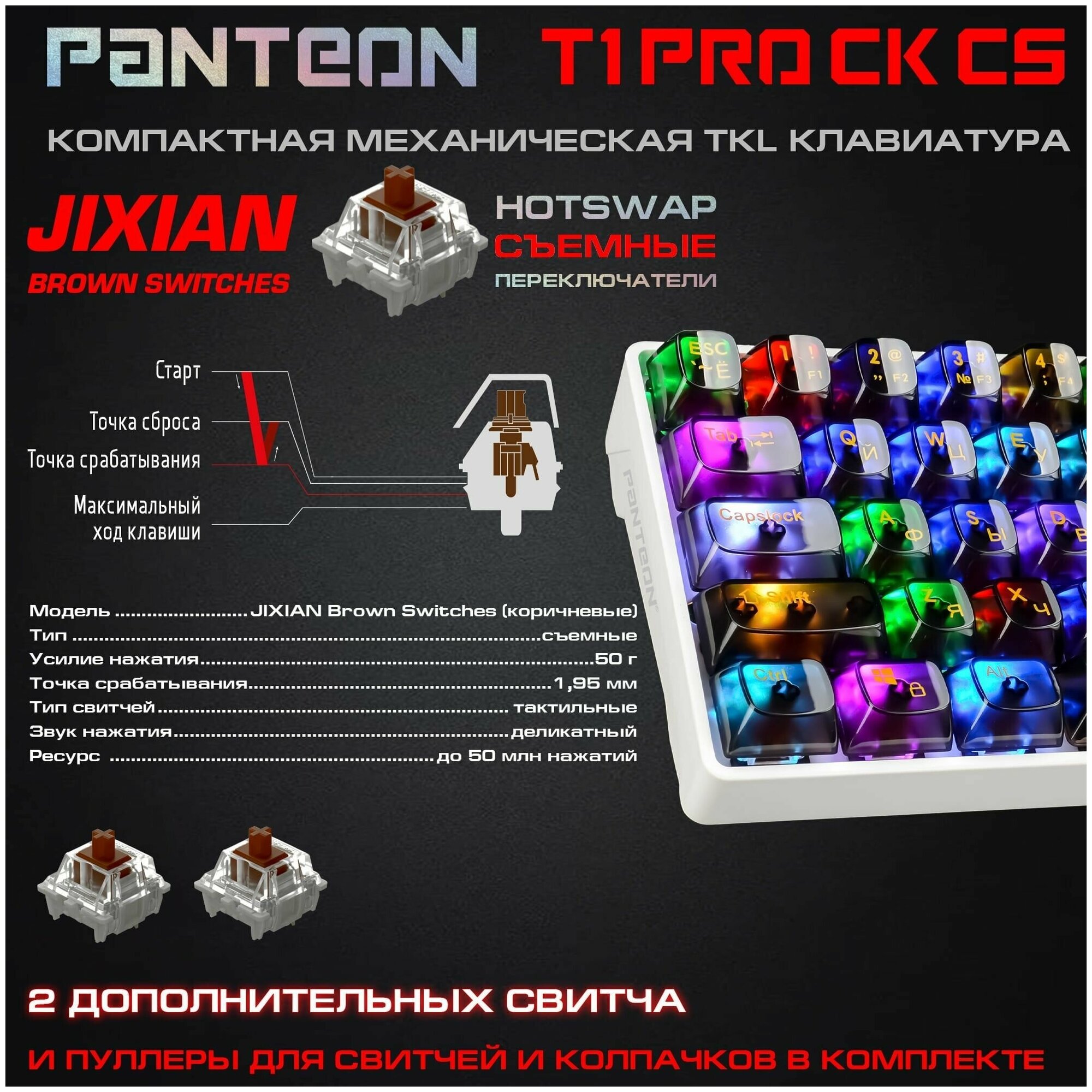 Компактная механическая игровая программируемая клавиатура с настраиваемой LED-подсветкой FULL RGB LIGHT PANTEON T1 PRO CK CS белая