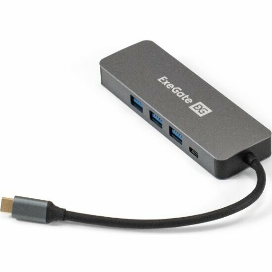 Док-станция 5-в-1 ExeGate DUB-31C/PD/H (кабель-адаптер USB Type-C --> 3xUSB3.0 + PD 60W + HDMI 4K@30Hz, Plug&Play, серый)