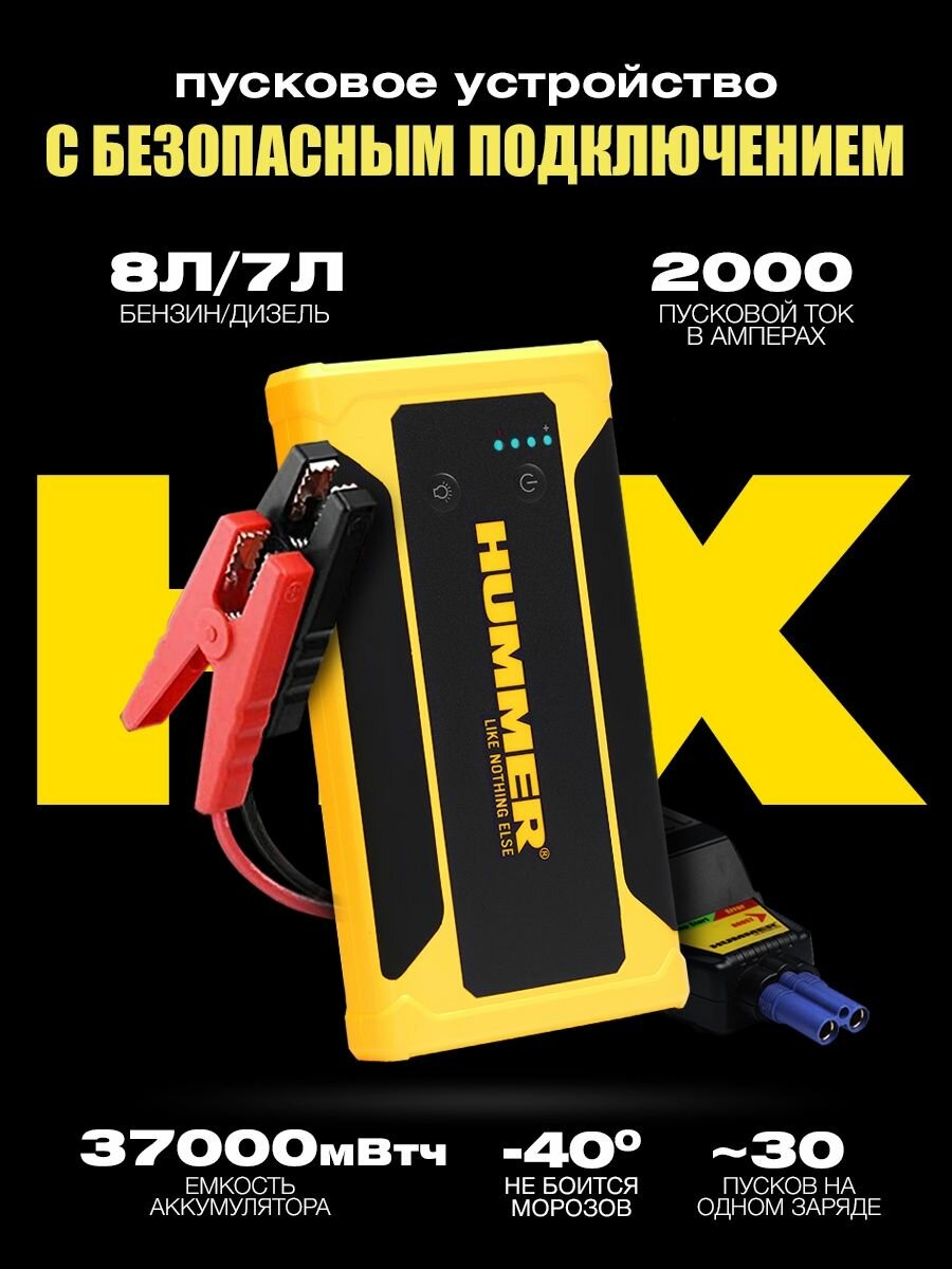 Портативное пусковое устройство с аккумулятором HUMMER HX для автомобиля + Power Bank + LED фонарь, пусковой ток - 2000А информация: