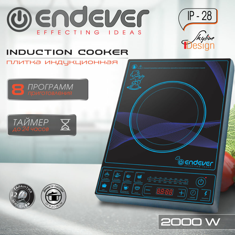 Отзывы на Индукционная плита настольная электрическая Endever IP-28 / 2000 Вт / до 15 кг / до 270 градусов / 8 автоматических программ