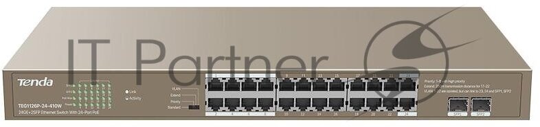 Коммутатор TENDA TEG1126P-24-410W 24GE+2SFP с 24-портовым PoE