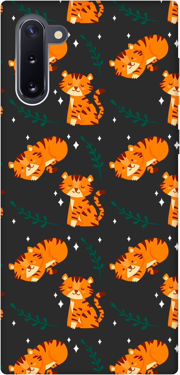 Матовый Soft Touch силиконовый чехол на Samsung Galaxy Note 10, Самсунг Ноут 10 с 3D принтом "Tigers" черный информация: