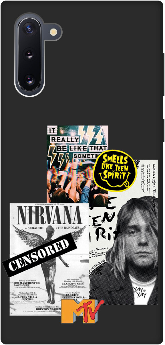 Матовый Soft Touch силиконовый чехол на Samsung Galaxy Note 10, Самсунг Ноут 10 с 3D принтом "Nirvana" черный информация: