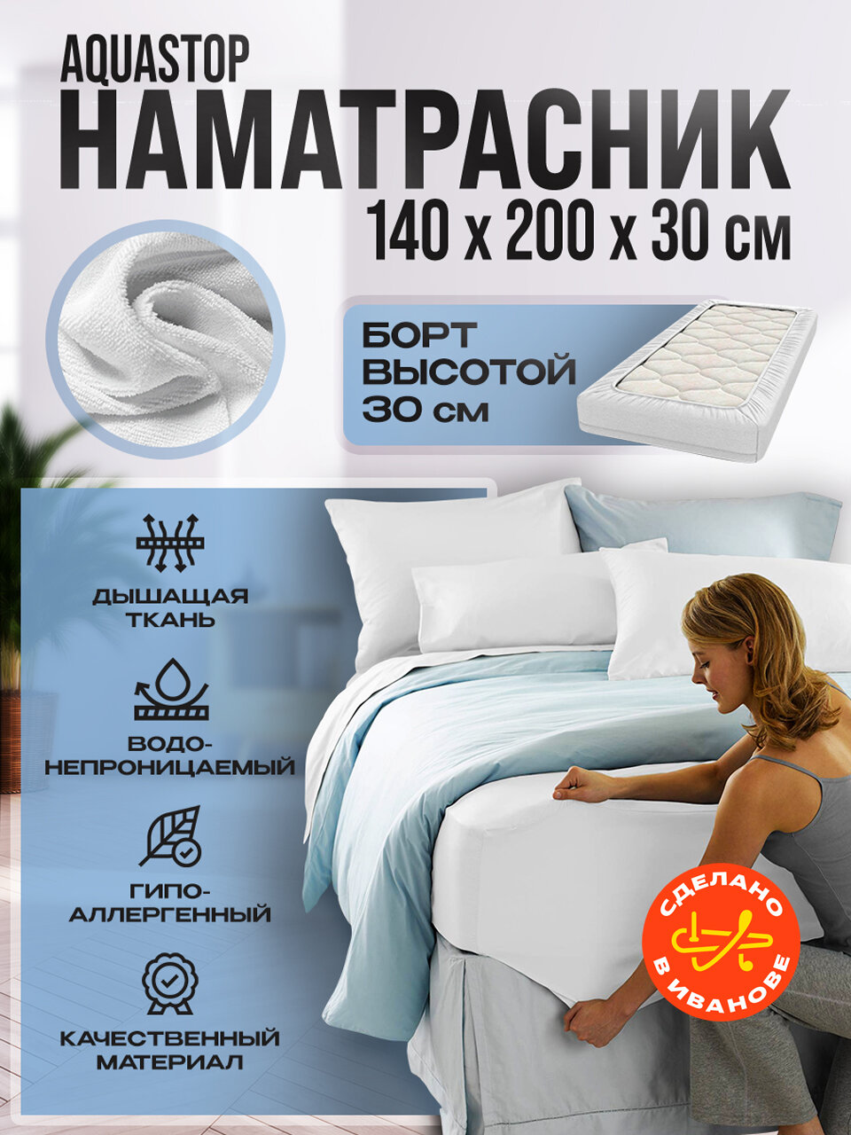 Наматрасник непромокаемый 140х200х30, наматрасник водонепроницаемый, чехол на матрас, борт 30см информация: