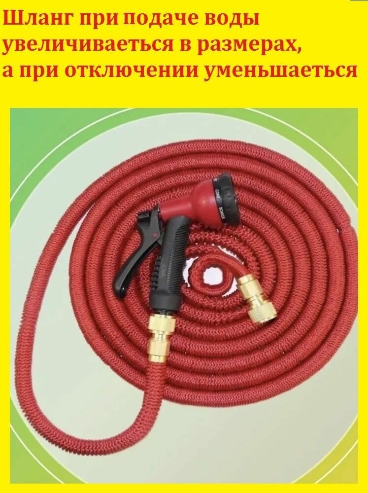 Шланг садовый растягивающийся в 5 раз 50 метров с распылителем 3/4 Magic Garden красный с металлическим соединением информация: