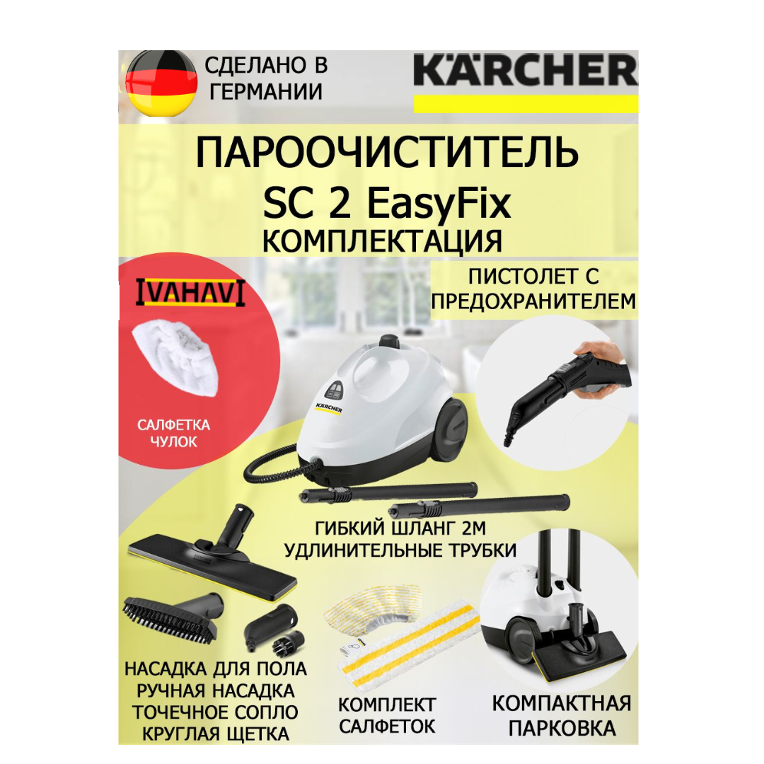 Отзывы на Пароочиститель Karcher SC 2 EasyFix белый+ микроволоконная обтяжка