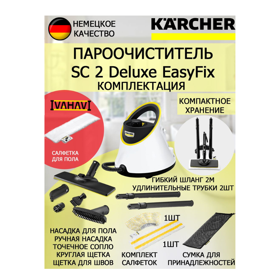 10 цен на Пароочиститель Karcher SC 2 Deluxe EasyFix + салфетка из микрофибры для пола