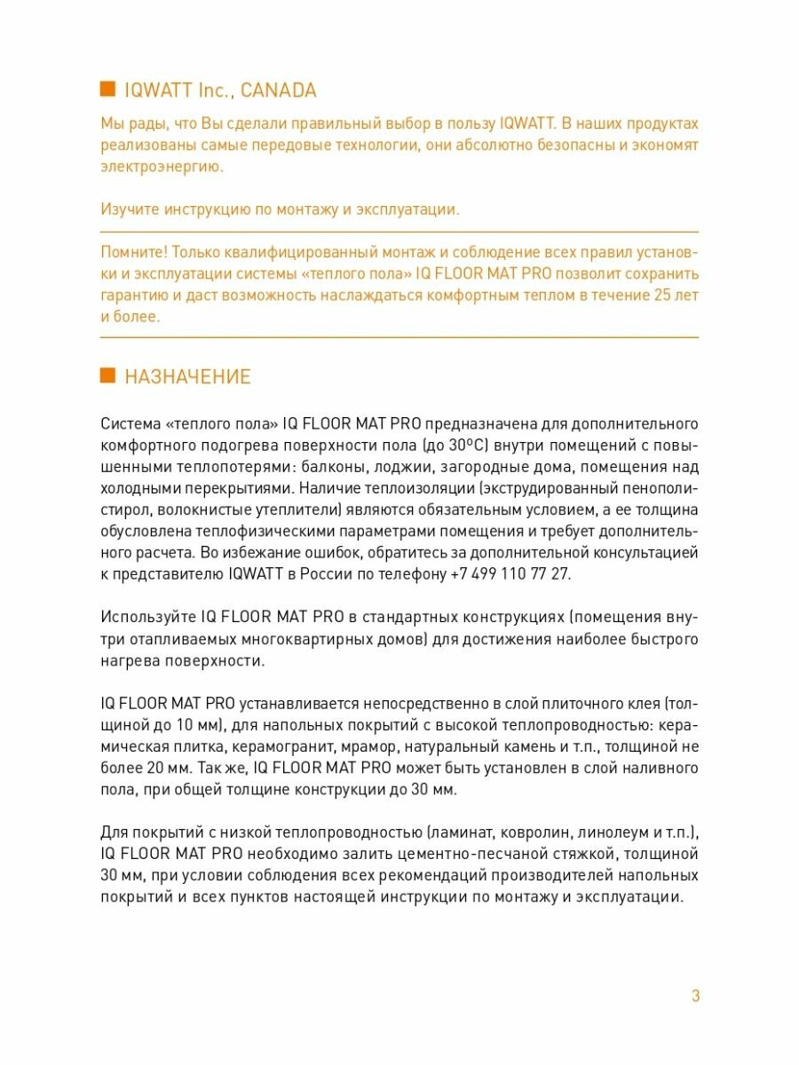 Теплый пол IQWATT IQ Floor MAT PRO-1200 Вт 6 кв м(электрический нагревательный мат) информация: