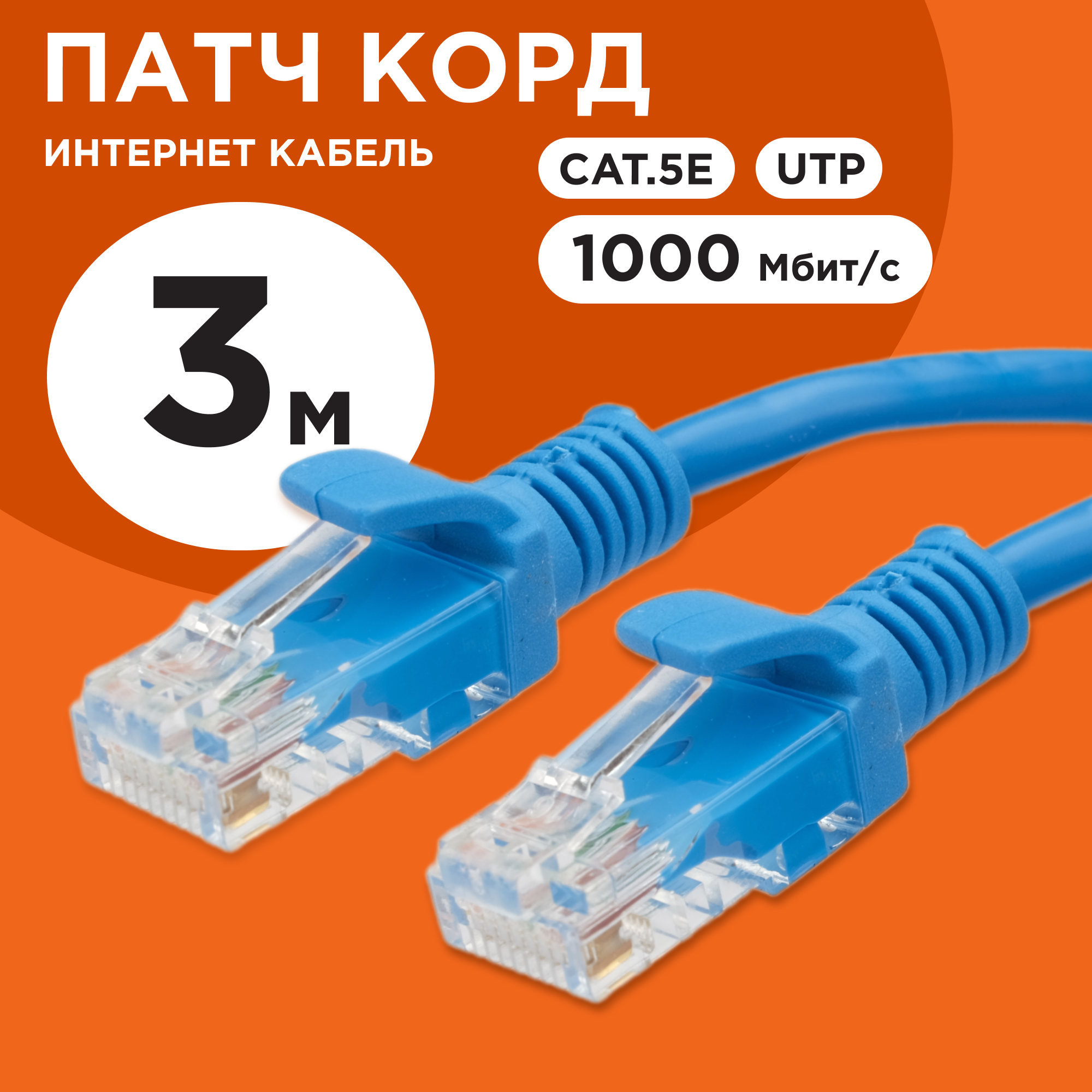 Патч-корд UTP Cablexpert синий категория 5e длина 3 метра PP12-3M/B 179 ₽
