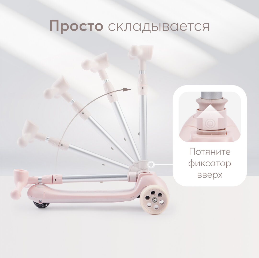 10 цен на 50031, Самокат детский Dream, самокат трехколесный детский для девочки, для мальчика, со световой подсветкой и музыкой светло-розовый
