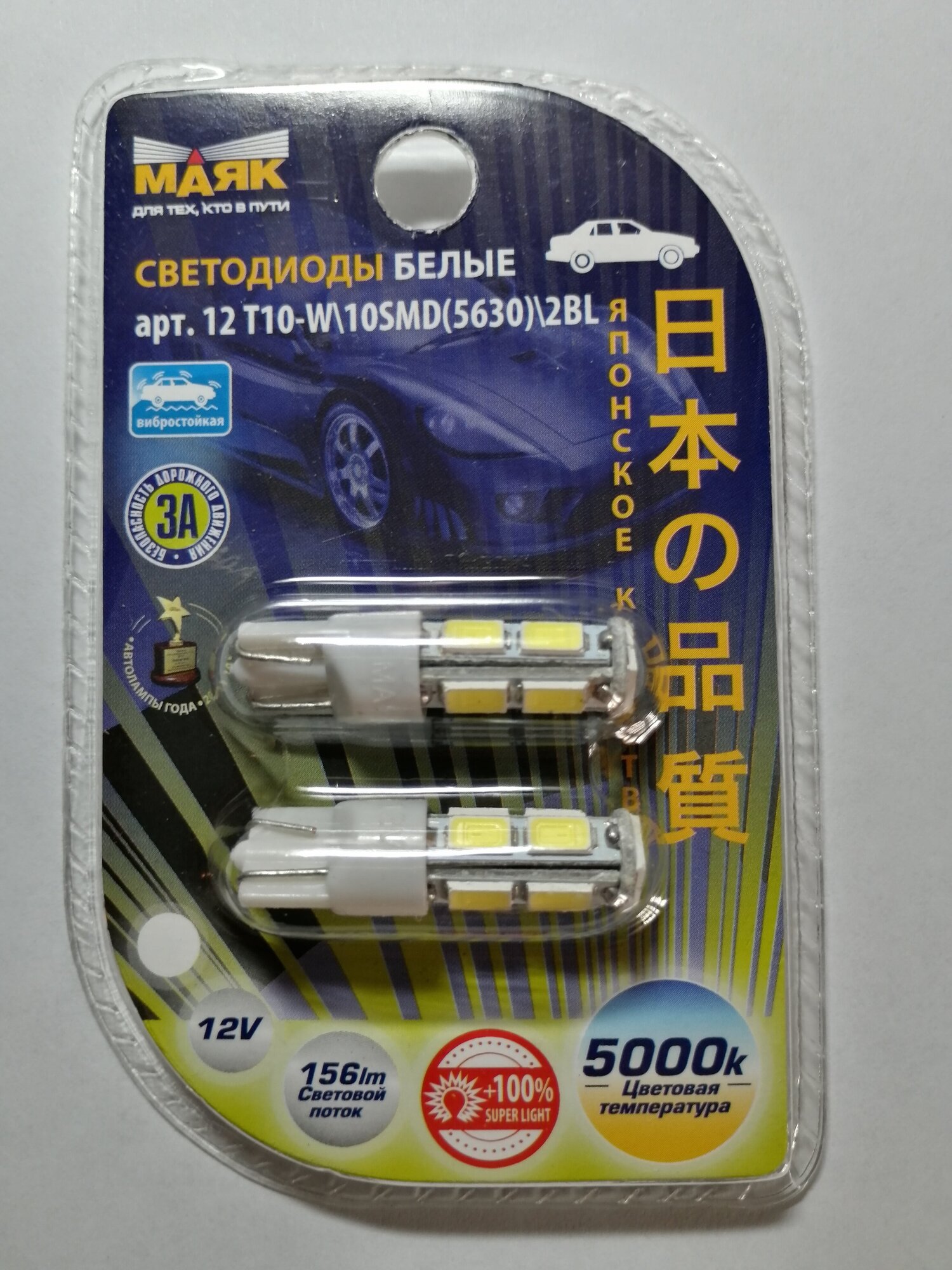 Отзывы на Маяк Лампа светодиодная 12 V T10-10SMD (5630) белая повторит, габарит б/цок (к-т 2шт) маяк