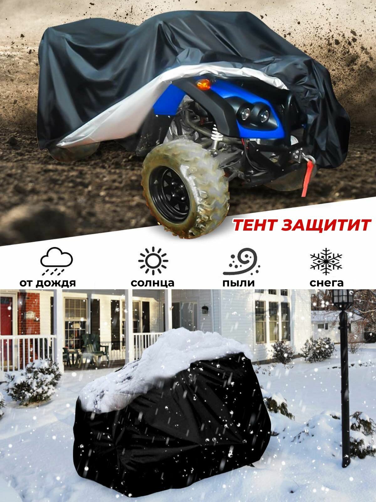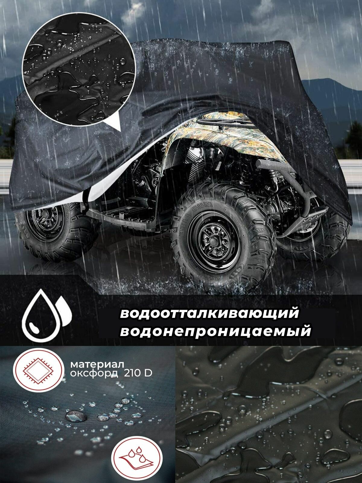 Чехол на квадроцикл тент защитный XL 210х120х115 см черный информация: