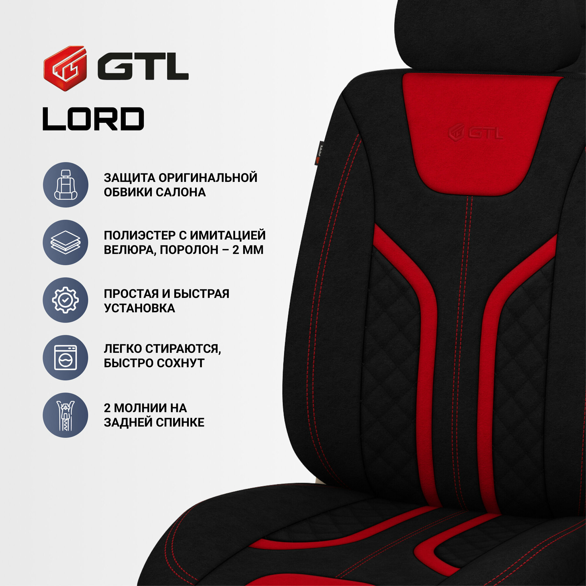 Чехлы GTL Lord (Черно-Красный), велюр 132766 информация: