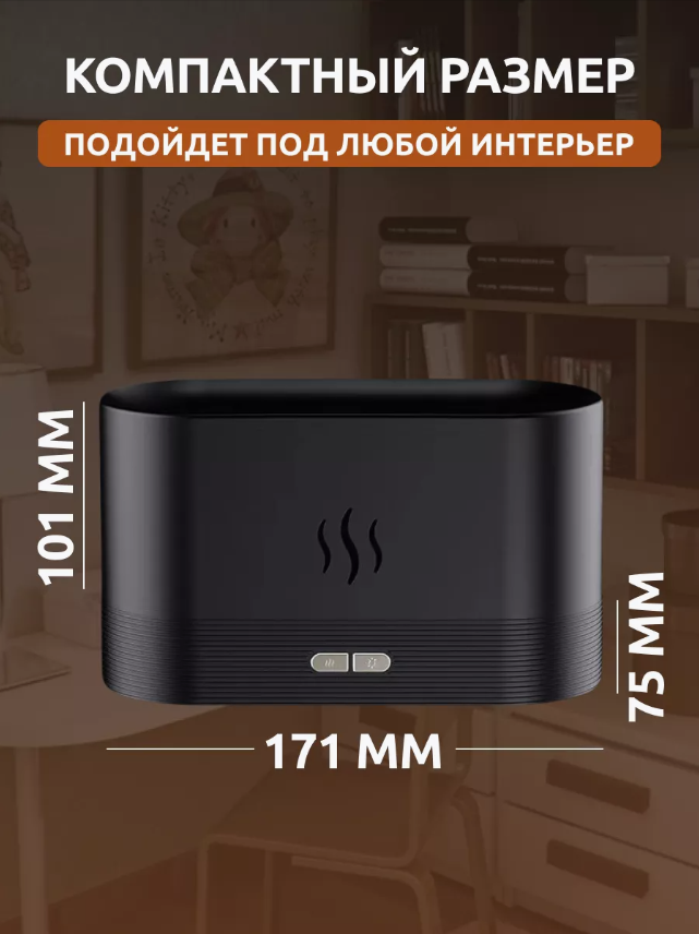 10 цен на Ультразвуковой увлажнитель-аромадиффузор воздуха с эффектом пламени 3 в 1, черный