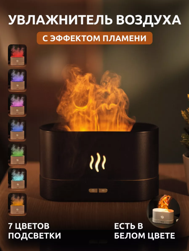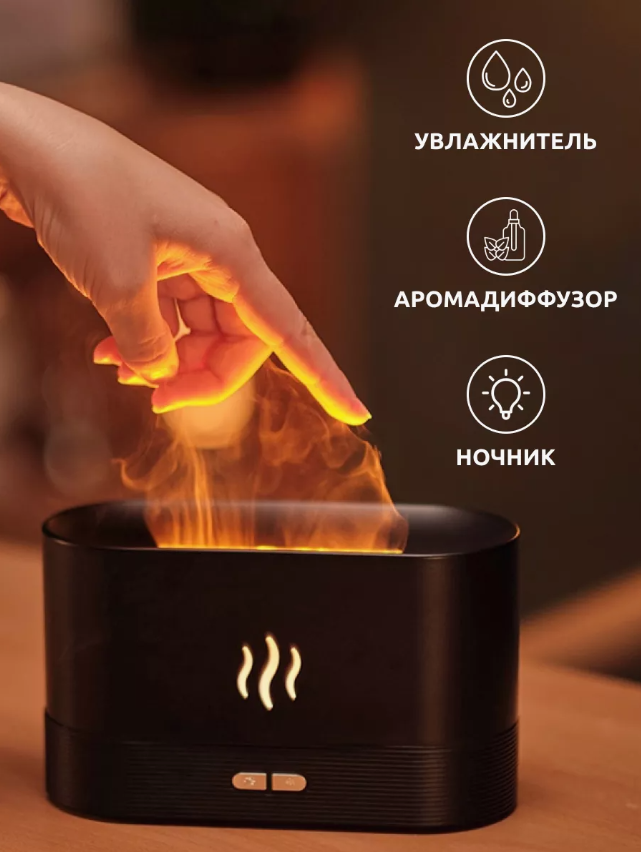 Отзывы на Ультразвуковой увлажнитель-аромадиффузор воздуха с эффектом пламени 3 в 1, черный